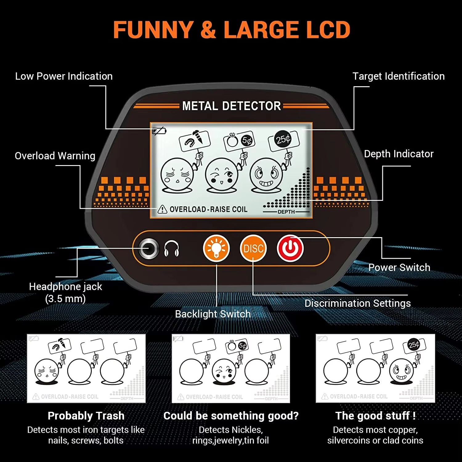 MD4070 handheld metal detector with smiling face LCD display, children's toy type beach grass underground treasure hunting