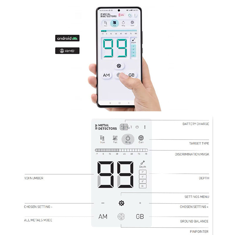 Air MD99 Wireless Metal Detector for Gold & Coins - Smart App Control"