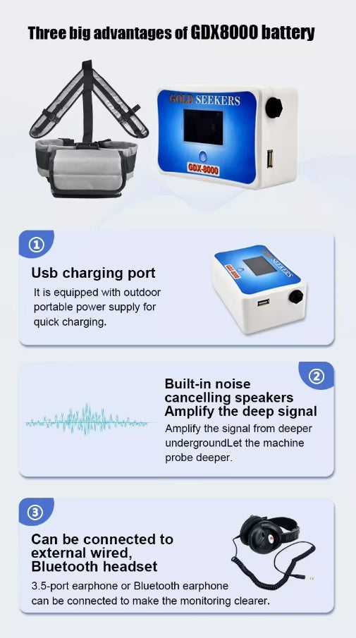 Factory Direct Selling Professional GDX8000 Super High Sensitivity Pulse Induction Treasure Hunting Gold Metal Detector