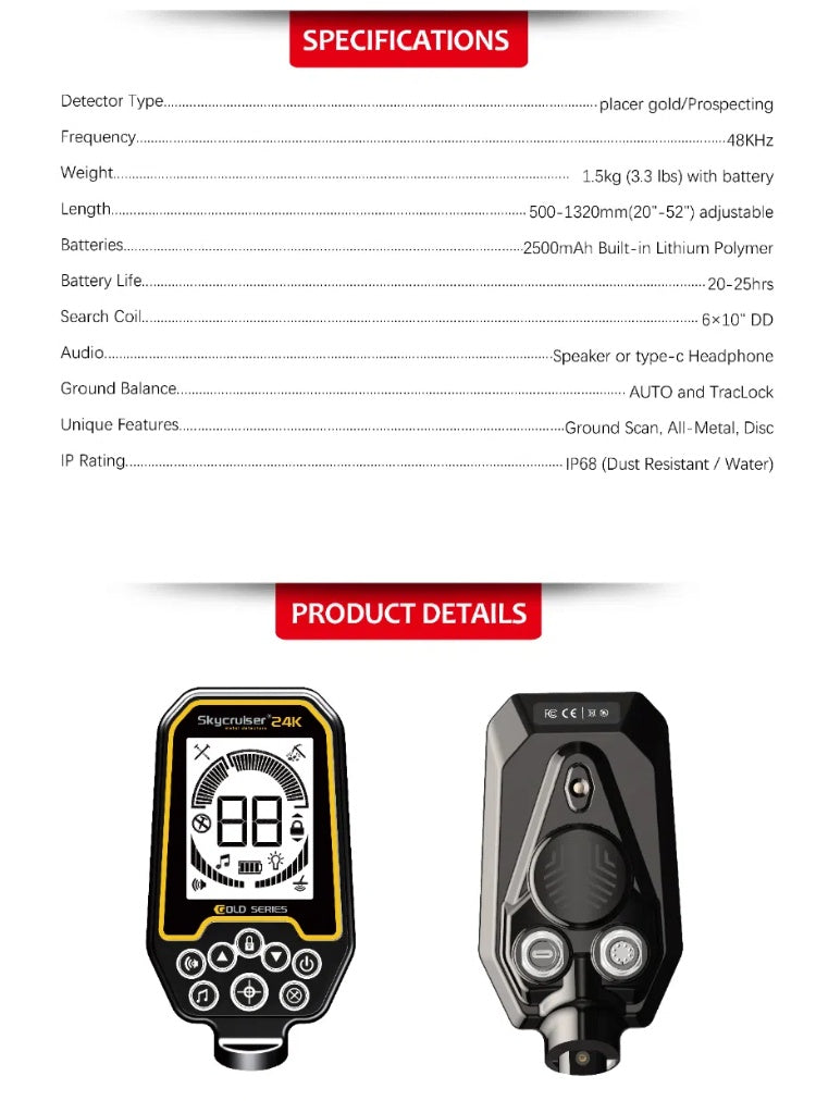 Skycruiser 24K Metal Detector for Adults Detecting Sand Gold High-Precision